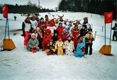 Bild rechts: "Ski-Fasching" auf dem Skilift Althütte!