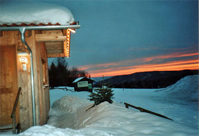 Bild links: Unser "Bergstüberl" im Winter bei Sonnenuntergang